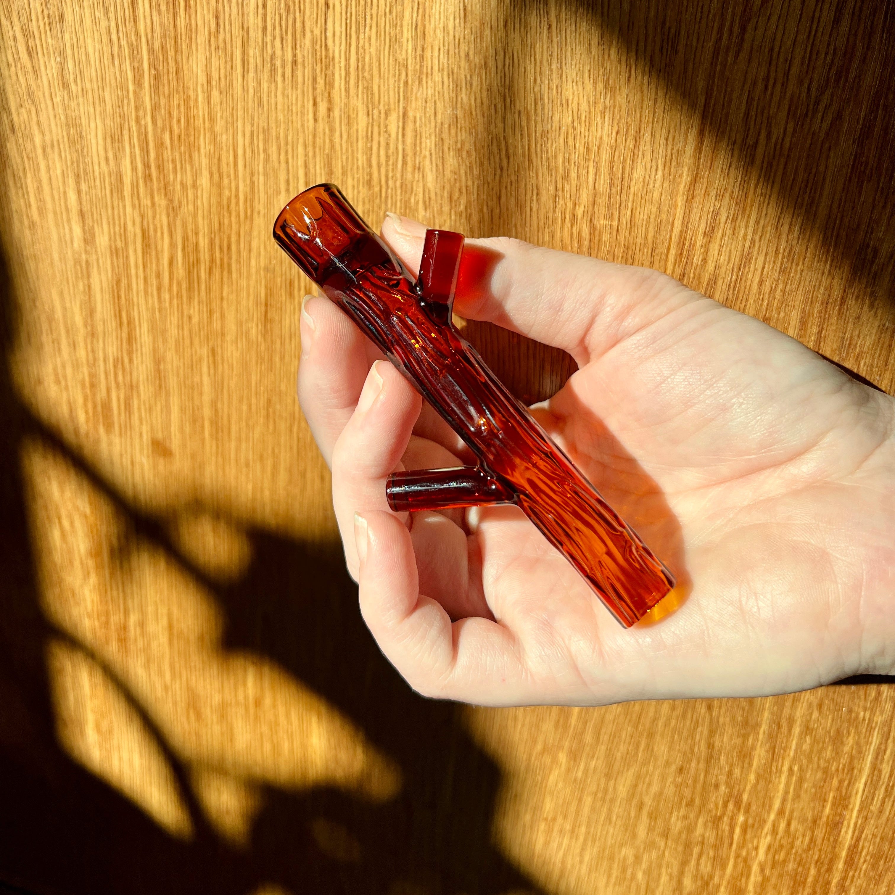 A sleek amber-glass chillum designed for wherever the day takes you, on a hike, by the river, or just sunk into the couch. It delivers a smooth pull, packs effortlessly, and stands out with its handcrafted look. Technically it’s a one-hitter… but realistically? You’re getting closer to three.